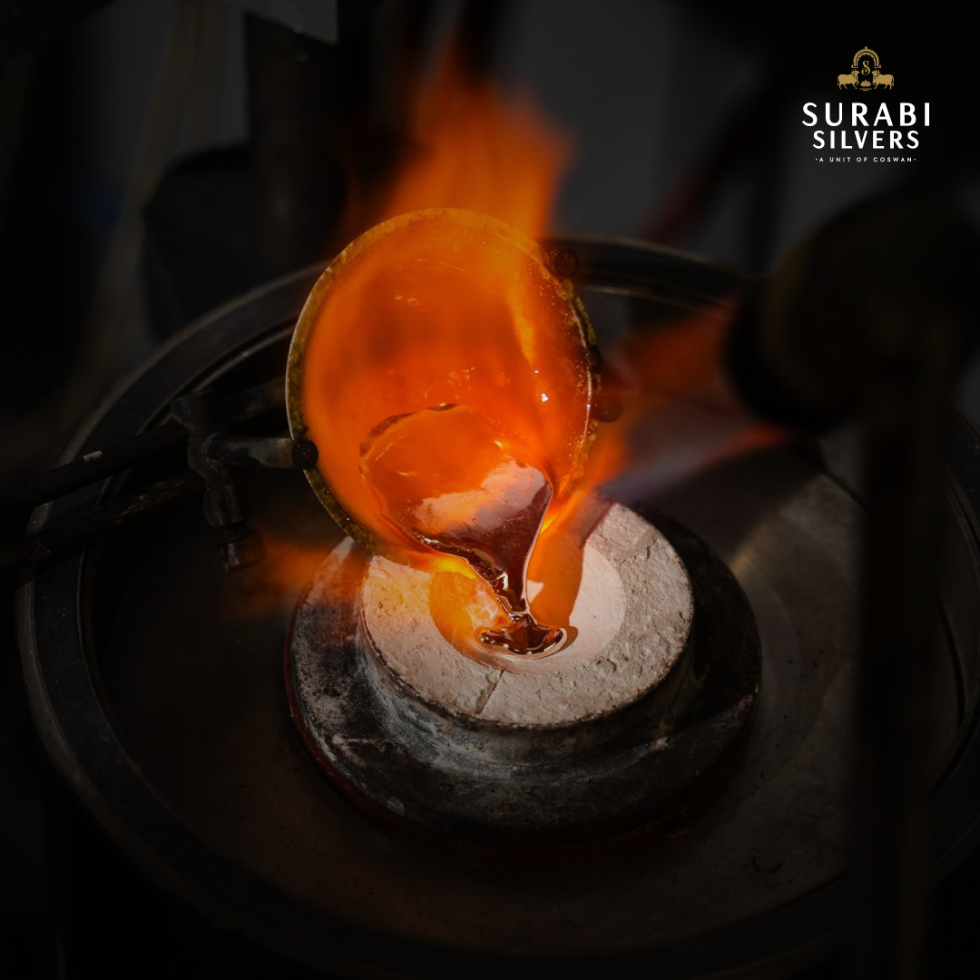 Only carefully selected silver is melted and cast with precision.In this transformative process, raw metal is shaped into forms that carry strength, grace, and enduring value. Every pour is executed under strict quality standards to preserve the integrity and purity of the metal.